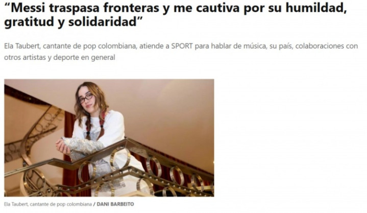 直播吧1月9日讯作为哥伦比亚新生代流行歌手,埃拉·陶伯特(ElaTaubert)是拉丁格莱美最佳新人奖得主。在接受《每日体育报》专访时,她谈论了自己最喜欢的球星梅西。